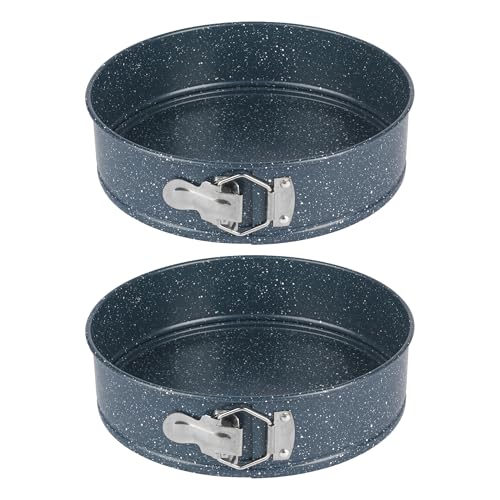 Russell Hobbs COMBO-8234 Springform Cake Tin Set of 2, Non-Stick Carbon Steel Loose Bottom Baking Pan, Removable Base for Cheesecake/Pies/Sponge, Strong & Durable, Easy Clean, Blue Marble, 24 cm