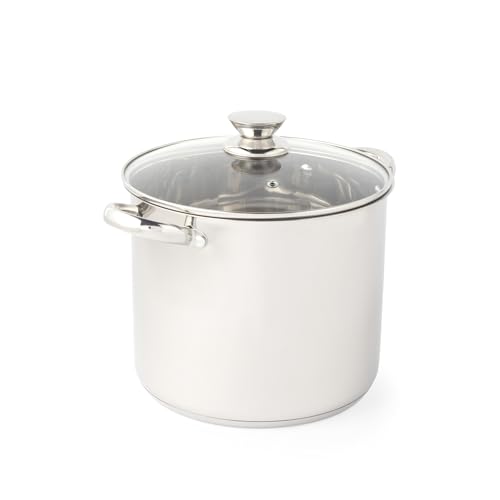 Russell Hobbs Classic Collection 26 cm Stockpot – Stainless Steel Cooking Pot, Tempered Glass Lid with Steam Vent, 11.5 Litre Capacity, Mirror Finish, Easy to Clean, for Soups, Casseroles, Curry