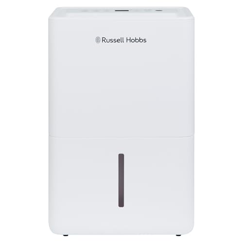 Russell Hobbs RHDH1001 10 Litre/Day Dehumidifier for Damp/Mould & Moisture in Home, Kitchen, Bedroom, Office, Caravan, Laundry Drying, 30m2 Room, Smart Timer, White