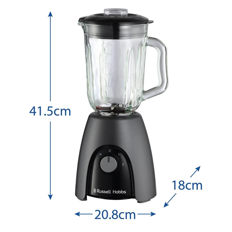 Russell Hobbs Jug Blender [Smoothie Maker] Mixer for Juices & Baby Food (1.5L Glass Jar, 2 speeds & pulse settings, Stainless-steel blades, BPA-free
