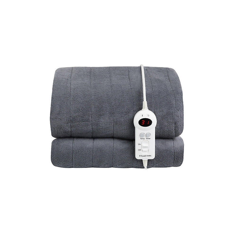 Russell Hobbs Grey Microfleece Heated Throw Electric Blanket with 9 Heat Settings