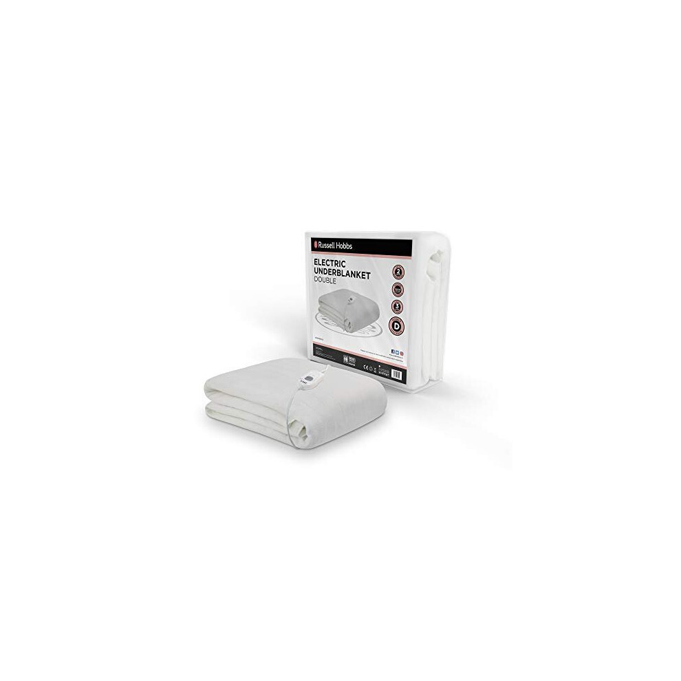 Russell Hobbs Electric Blanket, Heated Double Fitted Underblanket, 3 Heat Settings, Low Energy & Energy Efficient, Machine Washable, 140 X 150 cm, 90W, White, RHEDB6002, 2 Year Guarantee