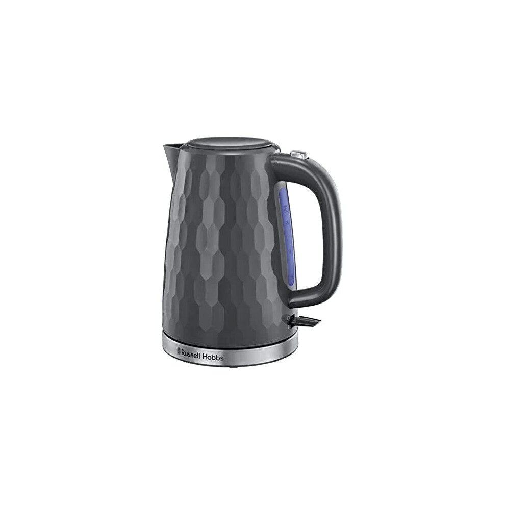 Russell Hobbs Honeycomb Electric 1.7L Cordless Kettle (Fast Boil 3KW, Grey premium plastic, matt & high gloss finish, Removable washable anti-scale