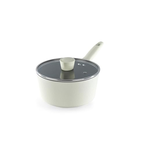 Russell Hobbs Côte Ceramic 18cm Saucepan - Forged Aluminium Body with PFAS-Free Non-Stick Coating, Soft-Touch Handle, Glass Lid with Steam Vent, Induction Compatible