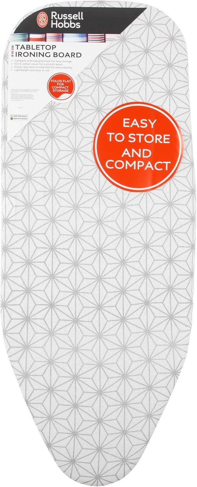 Russell Hobbs LA054012 Table Top Ironing Board – Small Foldable Ironing Table, Non-Slip Feet, Lightweight & Compact, 100% Machine Washable Cotton Cover, Travel/Small Homes, Left & Right-Handed Users