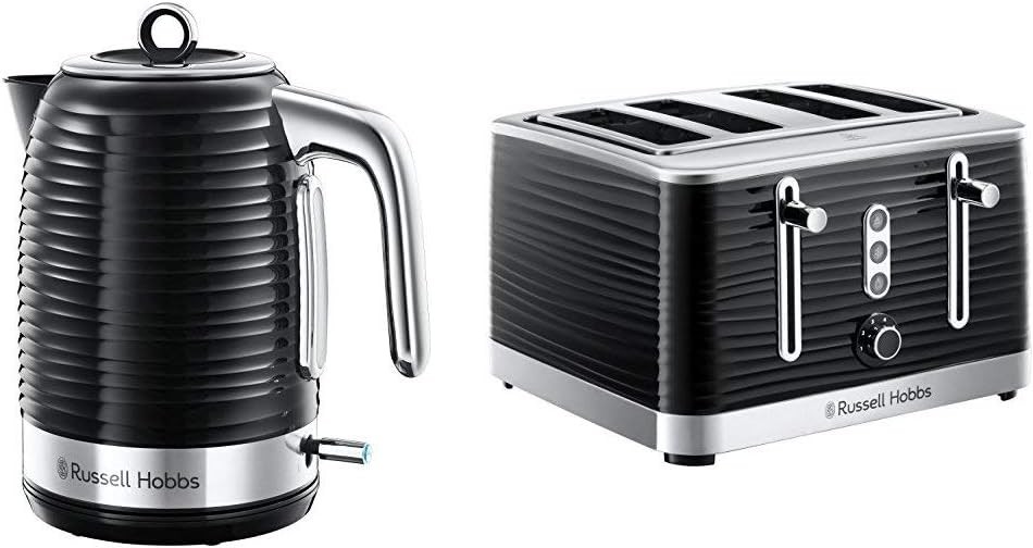 (Black, Kettle) Russell Hobbs 24382 Inspire High Gloss Plastic Four Slice Toaster