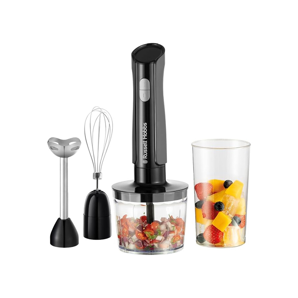 Russell Hobbs Hand Blender [3-in-1 Hand Mixer] Electric Chopper (Food Processor with 3 Attachments for Baby Food, Smoothies, Soup, 2 speeds