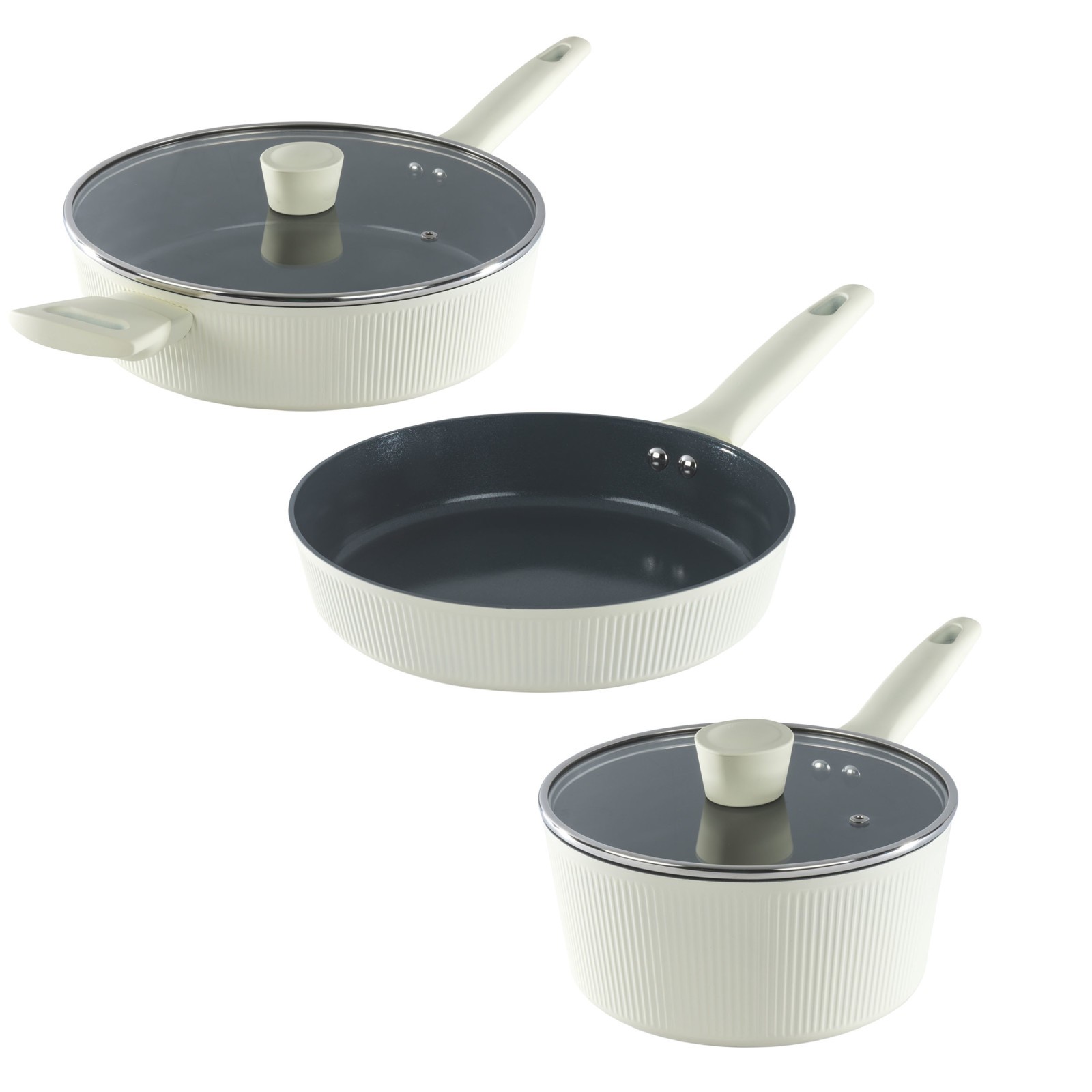 Russell Hobbs Côte Ceramic Pan Set: Sauté, Frying & Saucepans with Lid, Cream