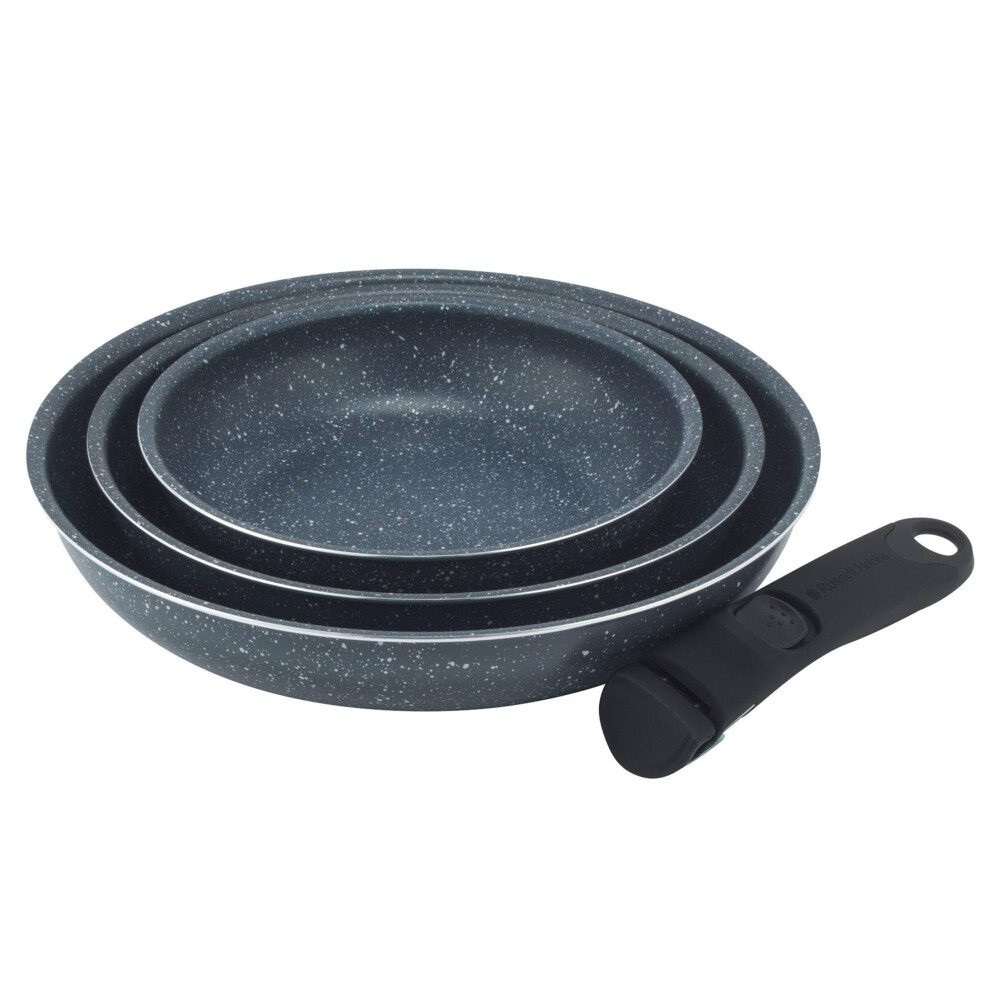 Russell Hobbs Nightfall Stone Frying Pan Set ? Smart Clip Non-Stick Pans, 20cm, 24cm, 28cm, Stay Cool Detachable Handle, Oven to Hob to Table Cooking,