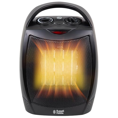 Russell Hobbs 2000W/2KW Electric Heater in Black PTC Ceramic Space Heater, Portable Oscillating 2 Heat Settings Overheat Protection, Adjustable Therm