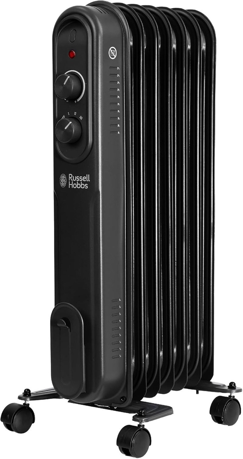 Russell Hobbs 1500W/1.5KW Oil Filled Radiator, 7 Fin Portable Electric Heater - Black, Adjustable Thermostat with 3 Heat Settings, Safety Cut-off, 15 m sq Room Size, RHOFR5001B, 2 Year Guarantee
