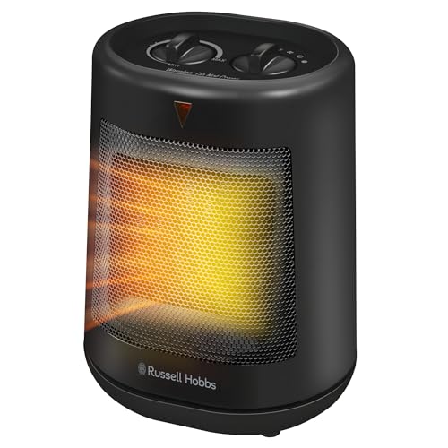 Russell Hobbs 1500W/1.5KW Electric Heater Black PTC Ceramic Space Heater, Portable Upright, 2 Heat Settings, Overheat Protection, Adjustable Thermostat, 15m2 Room Size, RHFH1006B, 2 Year Guarantee