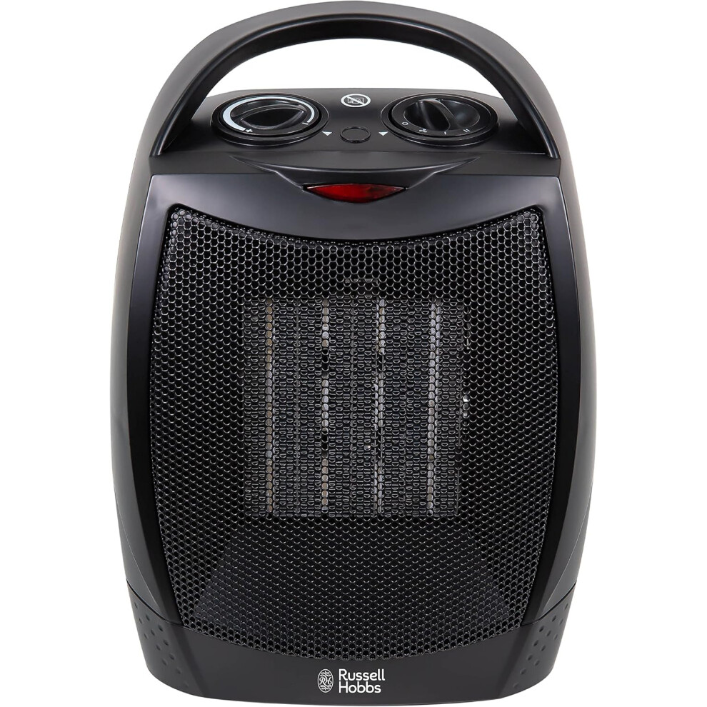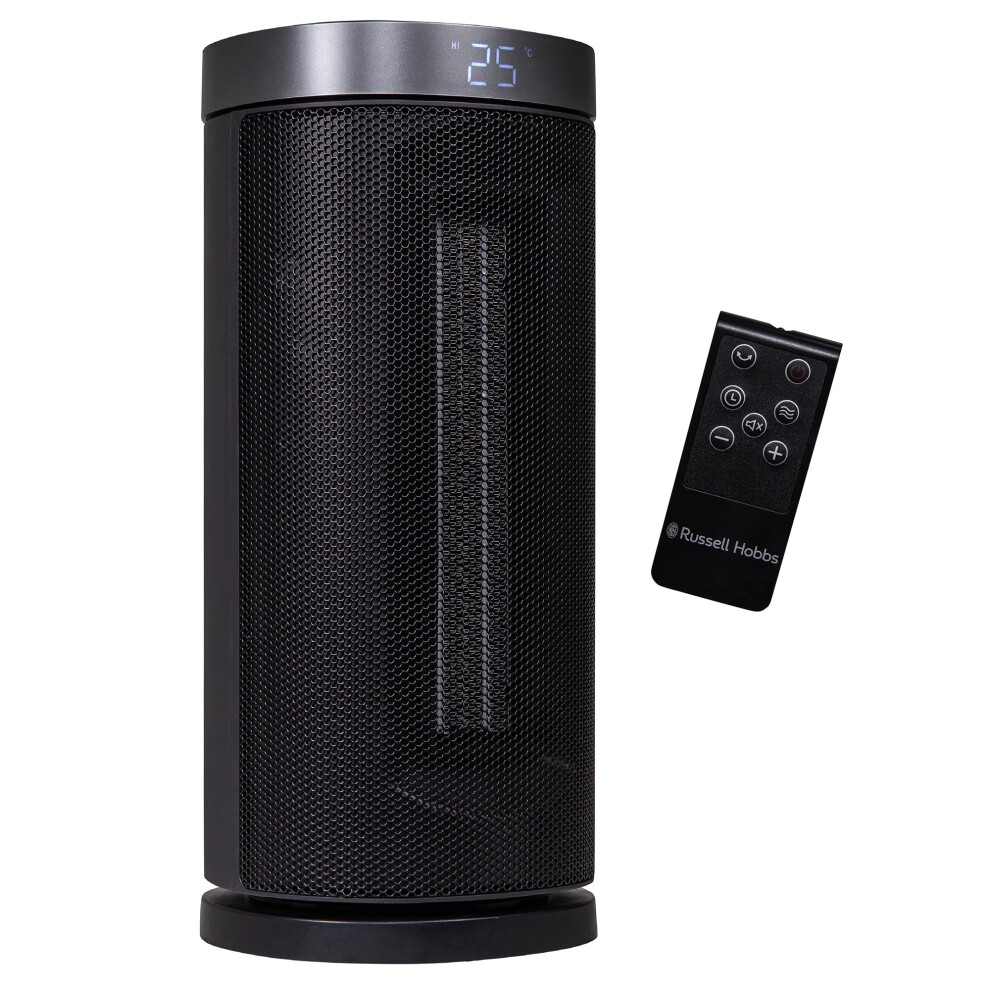 Russell Hobbs 1500W/1.5KW Electric Heater Black PTC Ceramic Space Heater, Portable Upright, 2 Heat Settings, Overheat Protection