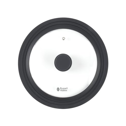 Russell Hobbs Universal Glass Lid for Pots – Fits 20, 22 and 24 cm Diameter Cookware, Soft-Touch Silicone Rim, Space-Saving, Steam Vent, Saucepans