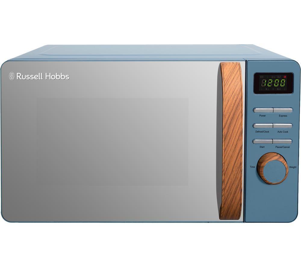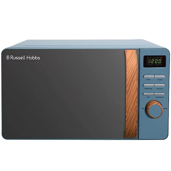 Russell Hobbs RHMD714BL 17 L 700 W Scandi Blue Digital Microwave with 5 Power Levels, Wood Effect Handle and Dials, Clock and Timer, Automatic Defrost, Easy Clean, 8 Auto Cook Menus [Energy Class D]