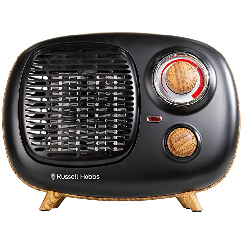 Russell Hobbs 1500W/1.5KW Electric Heater, Retro Portable Ceramic Heater Scandi Wood Effect in Black, 2 Heat Settings, Adjustable Thermostat, 15m2 Room Size, RHRETPTC2001WDB, 2 Year Guarantee