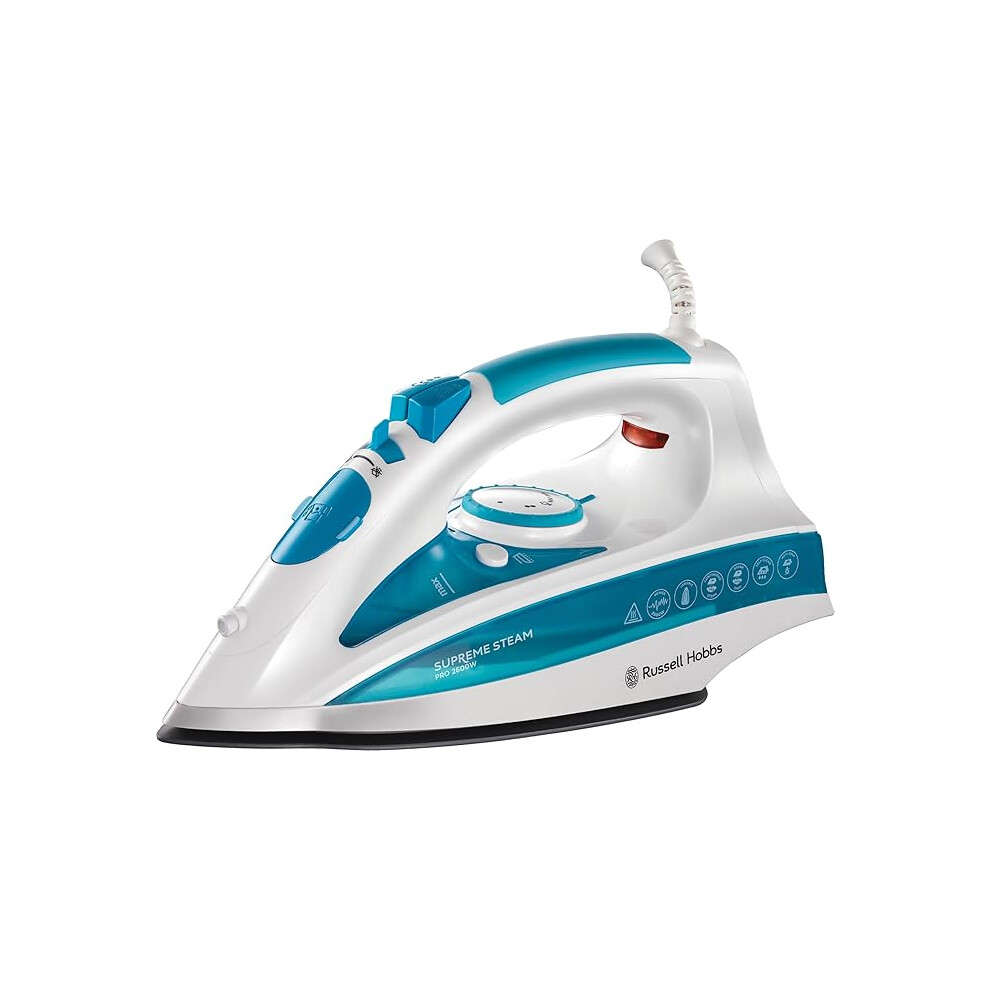 Russell Hobbs Supreme Steam Iron, Ceramic soleplate, Easy fill 350ml Water Tank, 155g Steam Shot, 60g Continuous steam, Self-clean, Anti calc & Anti-drip function, 3m Cord, Auto Shut Off, 2600W, 23260