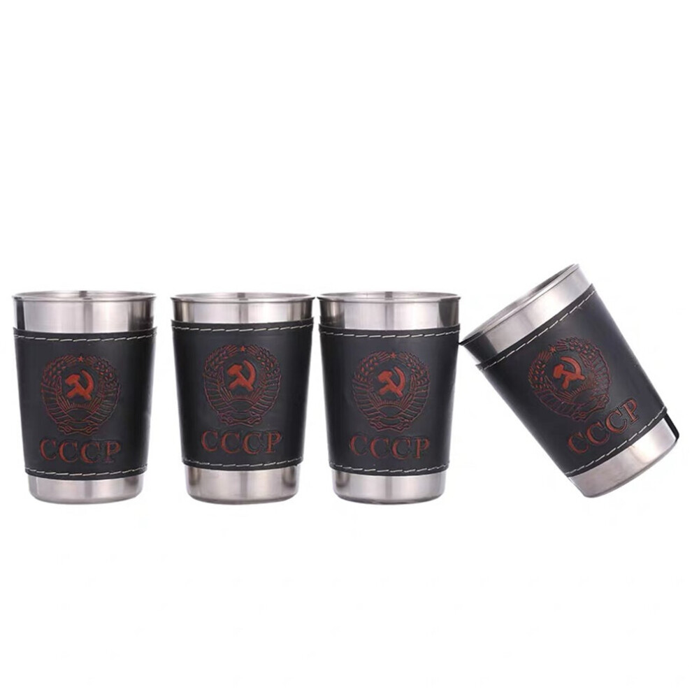 Vodka Cup 304 PU holster Russia Stainless Steel Mini Wine Tumbler Portable Personalized 4pcs 30ml/75ml/170ml Shot Glass Set