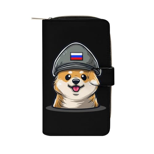 Corgi Dog in Military Russian Flag Hat Funny Wallet Credit Card Holders Large Handheld Coin Pockets Bag