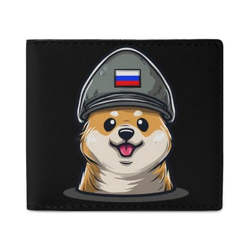 Corgi Dog in Military Russian Flag Hat Funny Wallets Slim Soft Front Pockets Bifold Wallet with ID Credit Card Holder