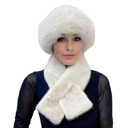 AMOUSDRDR Faux Fur Hat and Scarf Set for Women, Winter Plush Thickened Scarf and Hat Warm Set, Soft Fluffy Russian Bucket Hat Set (Apricot)