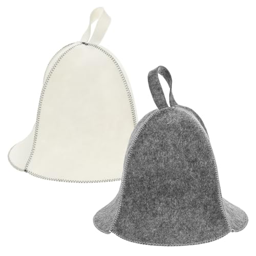 M METERXITY 2-Pack Sauna Hat for Women and Men, Felt Sauna Cap Vaporarium Soft Durable Comfortable Breathable for Spa/Steam Room/Bath House Accessories, Russian Banya Hat [White, Gray]