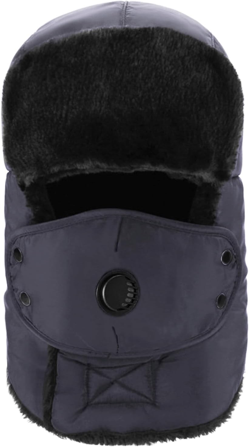 Winter Windproof Bomber Hat Russian Cap with Earflap Mask Men Women Super Warm Faux Fur Hunting Trooper Trapper Hat Waterproof Balaclava Ushanka Hat Outdoor Fishing Ski Skating Cycling