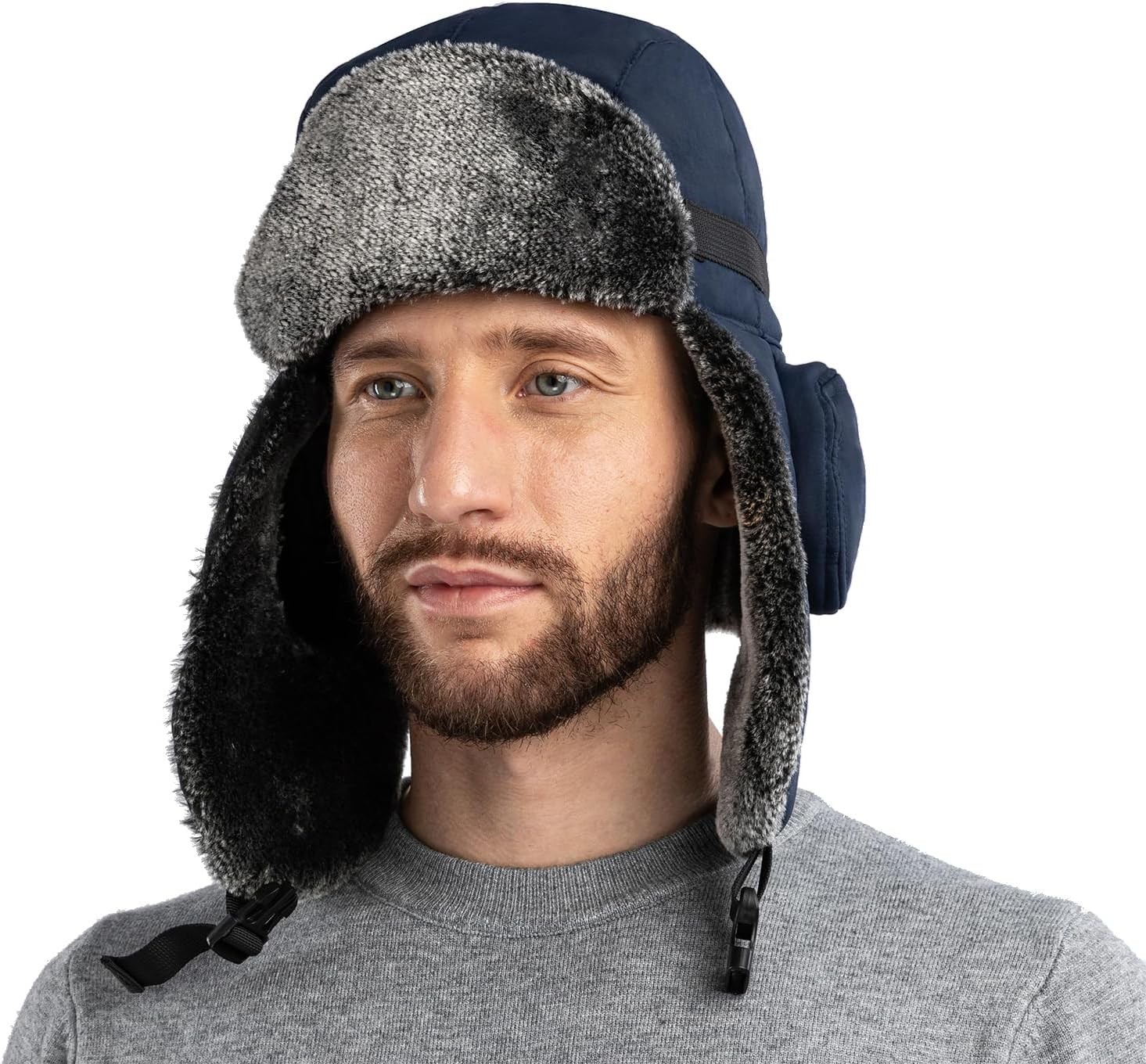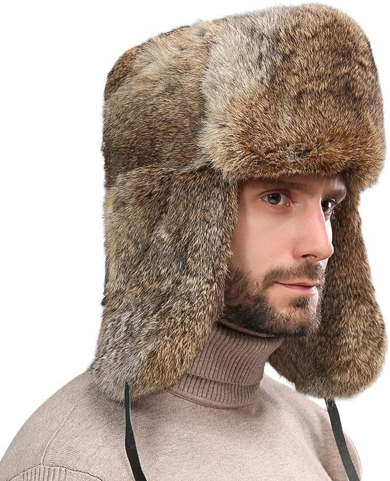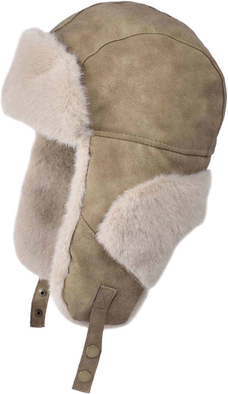 Eyccier Trapper Hat with Chin Strap Faux Fur Thermal Trapper Hat For Men Windproof Winter Hats for Men with Ear Flaps Outdoor Size Russian Hat