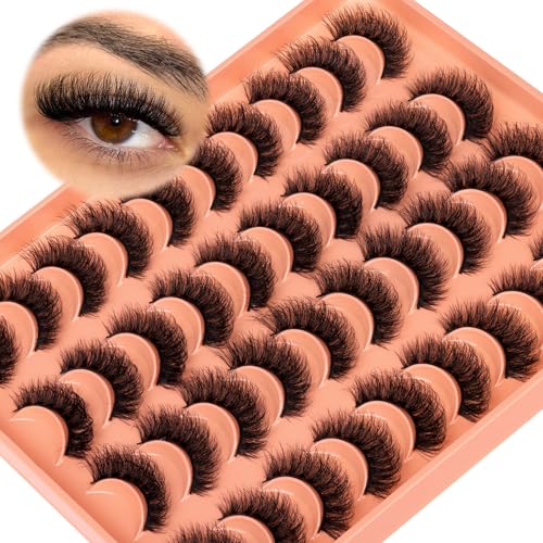 20 Pairs Fluffy False Eyelashes Cat Eye Lashes Strips Natural Look Wispy D Curl Faux Mink Eyelashes Thick Volume Strips Lashes Russian 6D Fake Eyelashes by Zegaine