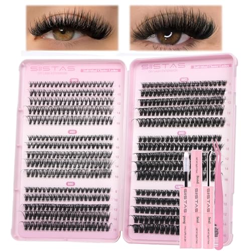 SIISTAS Individual Eyelashes Wispy Lash Clusters Kit 560PCS Natural Eyelashes 8-16mm D Curl Fluffy Lashes Kit with Russian Cluster Lashes Glue Bond and Seal and Lash Tweezers(40+50+60+80+100+120)
