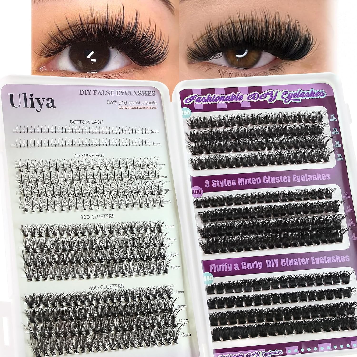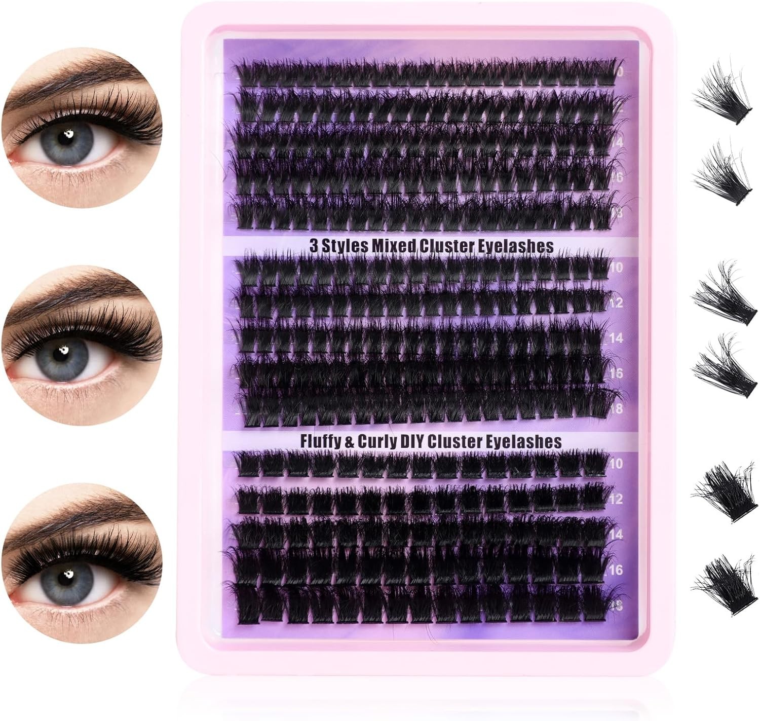 Lancry Russian Cluster Lashes, 80D+100D+180D Individual Eyelashes, Fluffy 10-18
