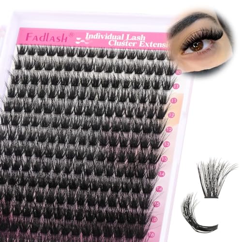 FADLASH Individual Cluster Lashes 20d 0.07mm Curl 12mm Russian Cluster Lashes Fluffy Natural Wispy Extensions