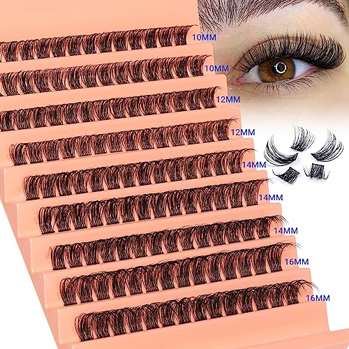FANDIQ Individual Eyelashes 224PCS Natural Cluster Lashes D Curl Lashes Russian Individual Cluster Eyelashes for Beginners (100D 8-16mm)
