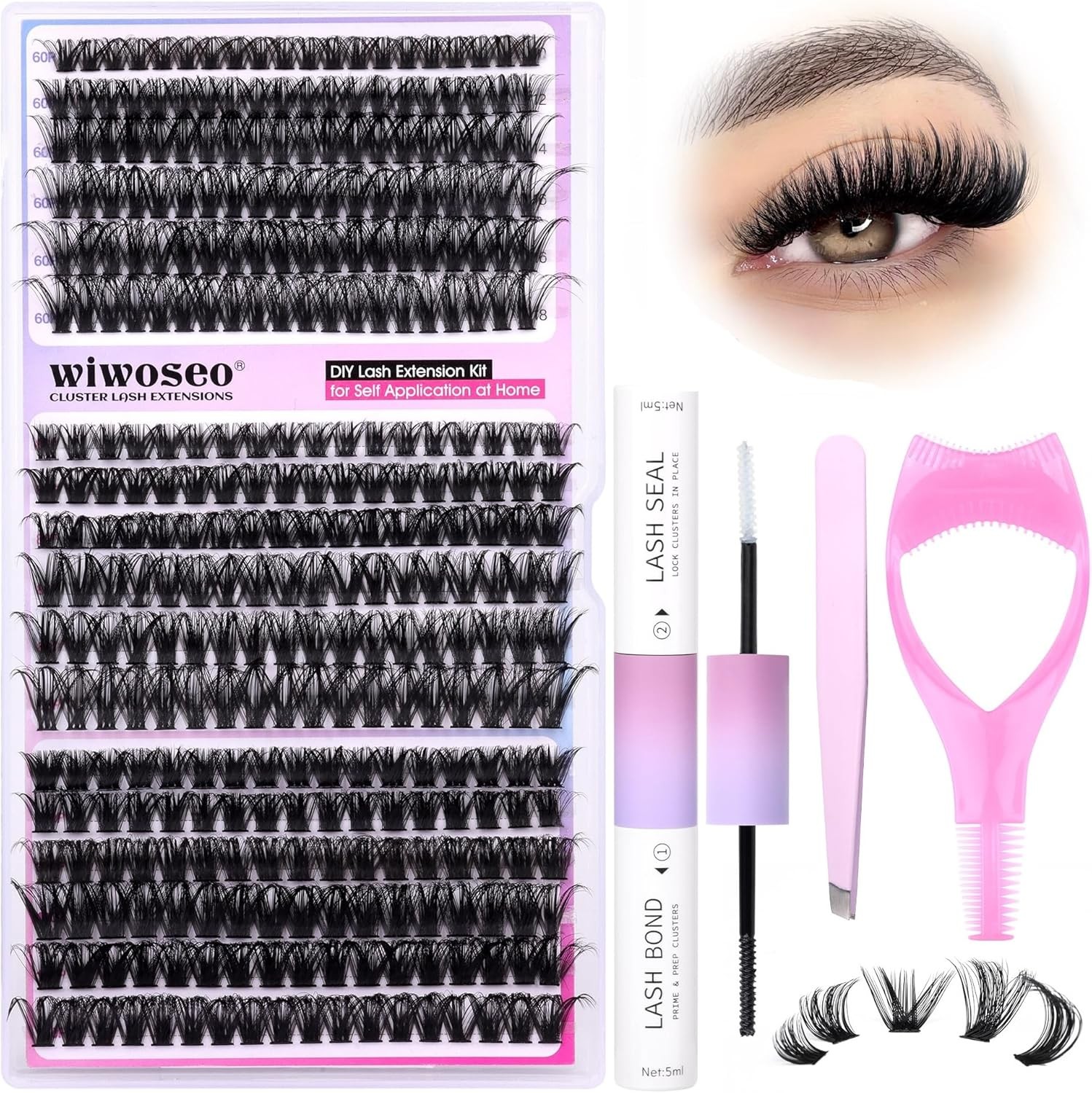 wiwoseo Russian Cluster Lashes DIY Lash Extension Kit with Bond and Seal Lash G