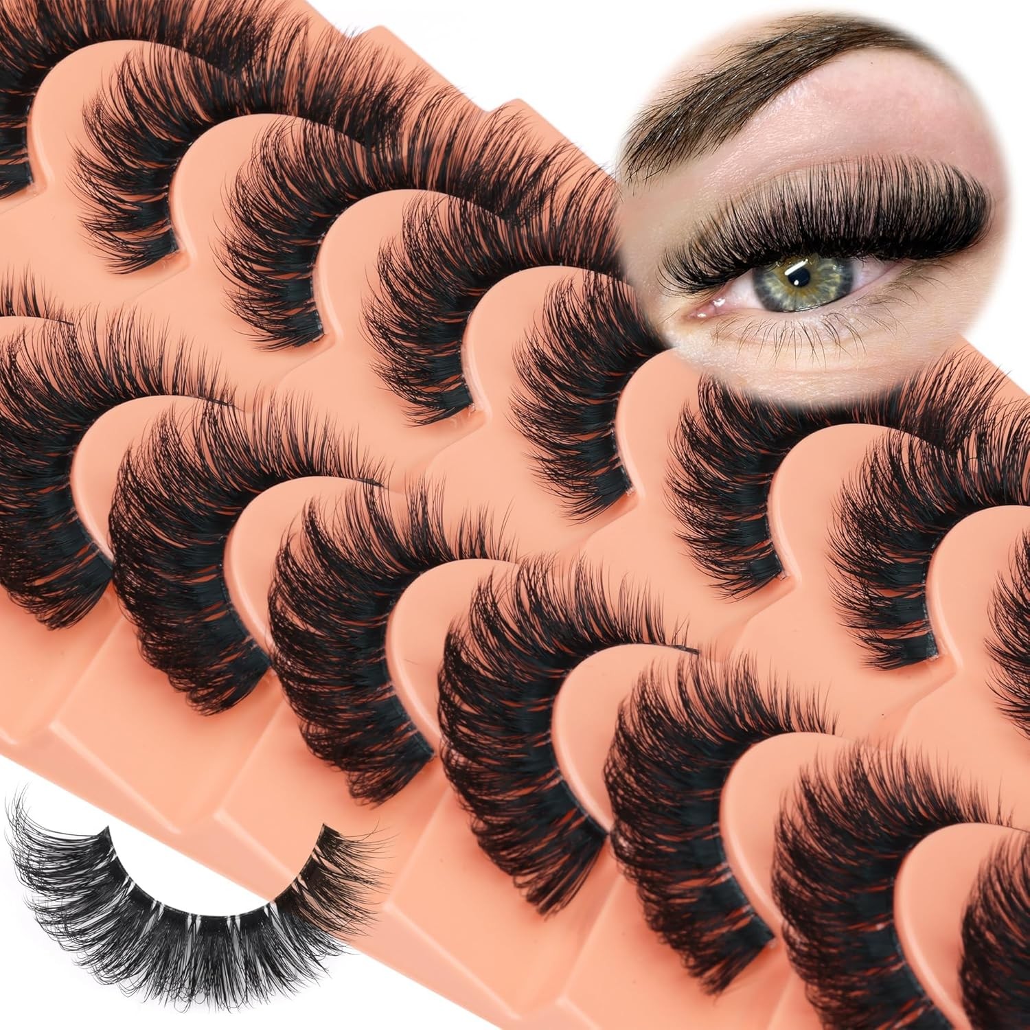 CNMTCCO False Eyelashes 10 Pairs Russian Strip Lashes Natural Fluffy Densely