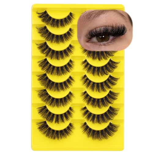 CNMTCCO False Eyelashes 10 Pairs Russian Strip Lashes Natural Fluffy Wispy D Curly Faux Mink Lashes Thick Short Soft Eyes Lash Reusable Fake Eyelashes (Densely)