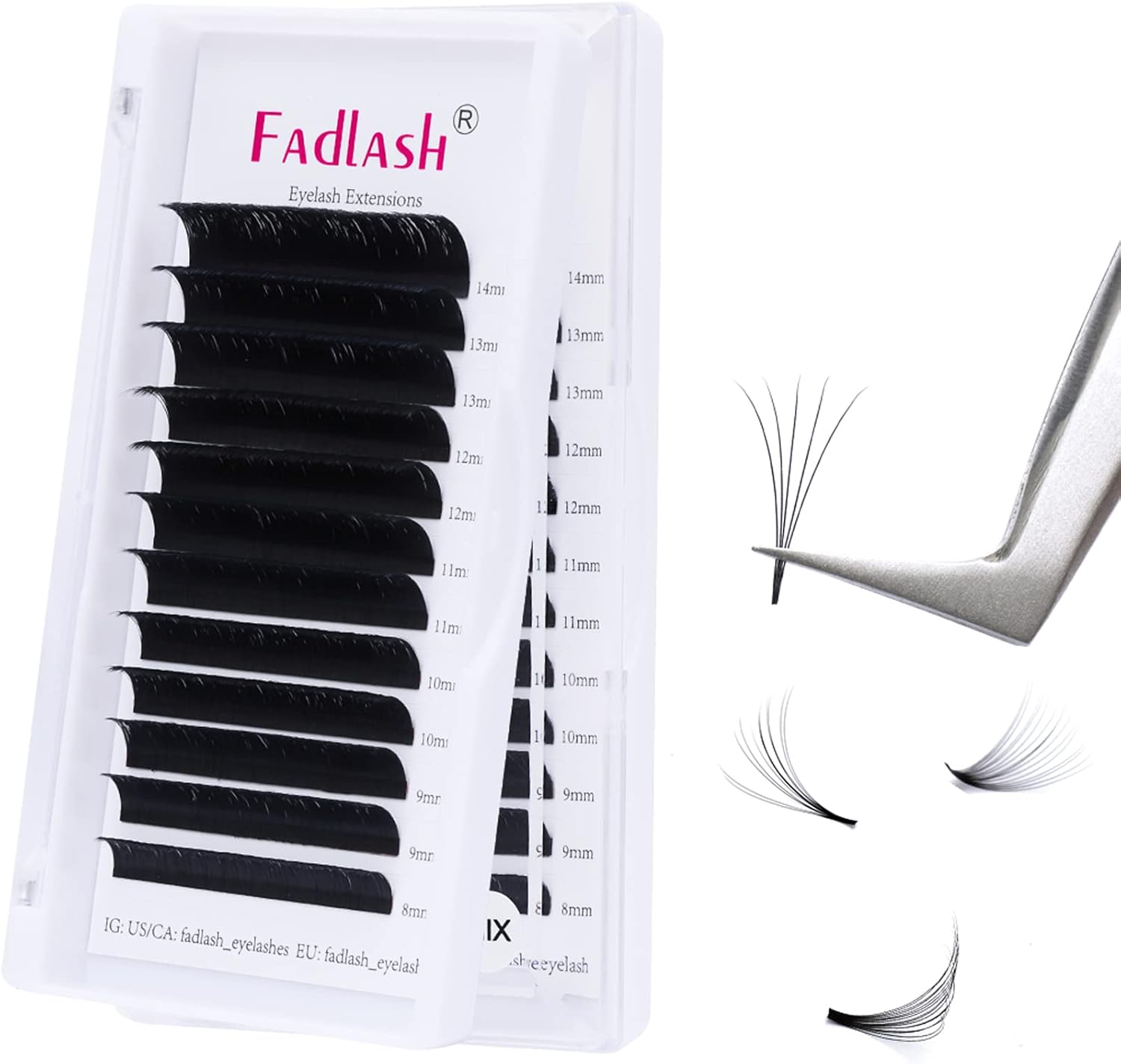 FadlashEasy FanLashes D Curl - 0.05, 12mm Russian Lashes for Natural Look -...