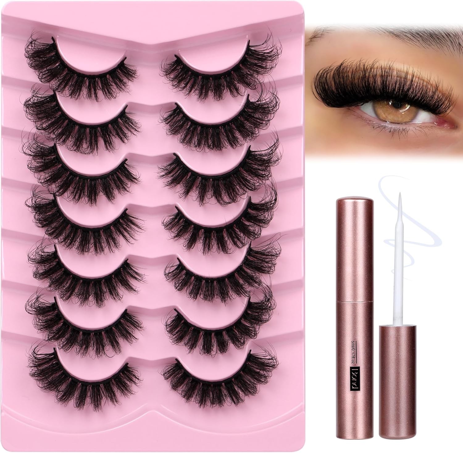 wiwoseo Eyelashes Russian Strip Lashes D Curly Natural Wispy Fluffy 3D...