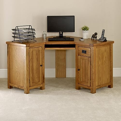 The Furniture Market Rustic Oak Corner Desk – Space-Saving Office Workstation, Large Storage, Keyboard Tray, Solid Wood, Minor Assembly Required - D 550mm x H 790mm