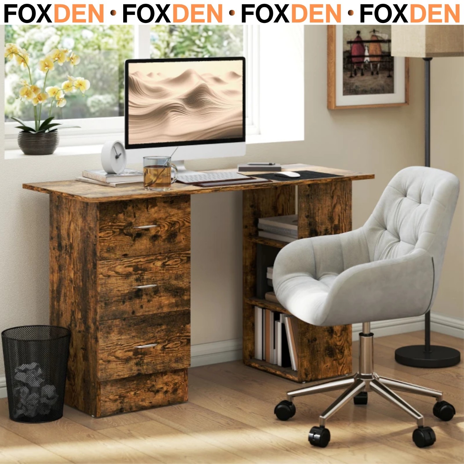 Rustic Computer Desk with Drawers 3 Shelves Reversible 120cm Study Table Office