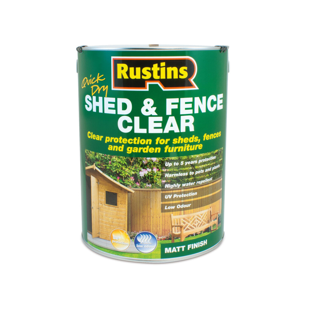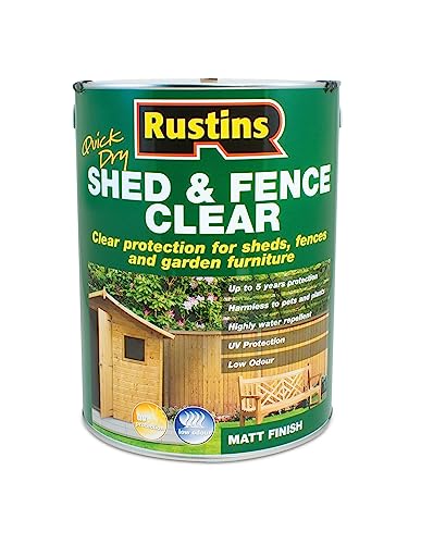 Rustins FSCL5000 Quick Dry Shed and Fence Clear Protector 5 Litre - Exterior Timber Finish with UV Resistance (RUSECWP5L)