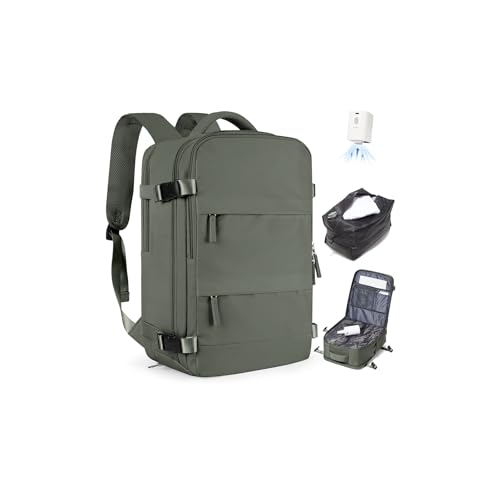 SZLX Vacuum Backpack Travel Bag with Pump,New Ryanair Cabin Size Bag Backpack Wizz air,Large Travel Backpack Women Men Casual Daypack Fit 14 Inch Laptop with Shoes Compartment,40x20x25,Olive Green