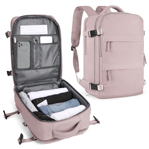 WANDF Cabin Bag 40x20x25 - Ryanair Underseat Travel Bag - TSA Approved 20L Pink Carry-On with Quart Size Bag & Shoes Compartment for Women & Men