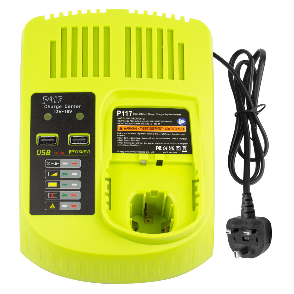 Ryobi 18V P117 Fast Charger 3.0A Li-ion UK Plug compatible with P102 P103 P104 P107 and other Ryobi 18V batteries