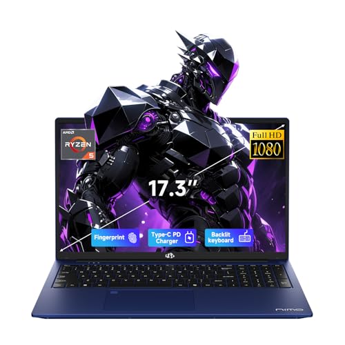 NIMO 17.3" IPS FHD-Gaming-Laptop, Ryzen 5 6600H 16GB DDR5 RAM 512GB SSD (Beat i7-1165G7 Up to 4.5GHz) Radeon 660M GPU-Computer with 100W Type-C Charger Backlit Keyboard Fingerprint