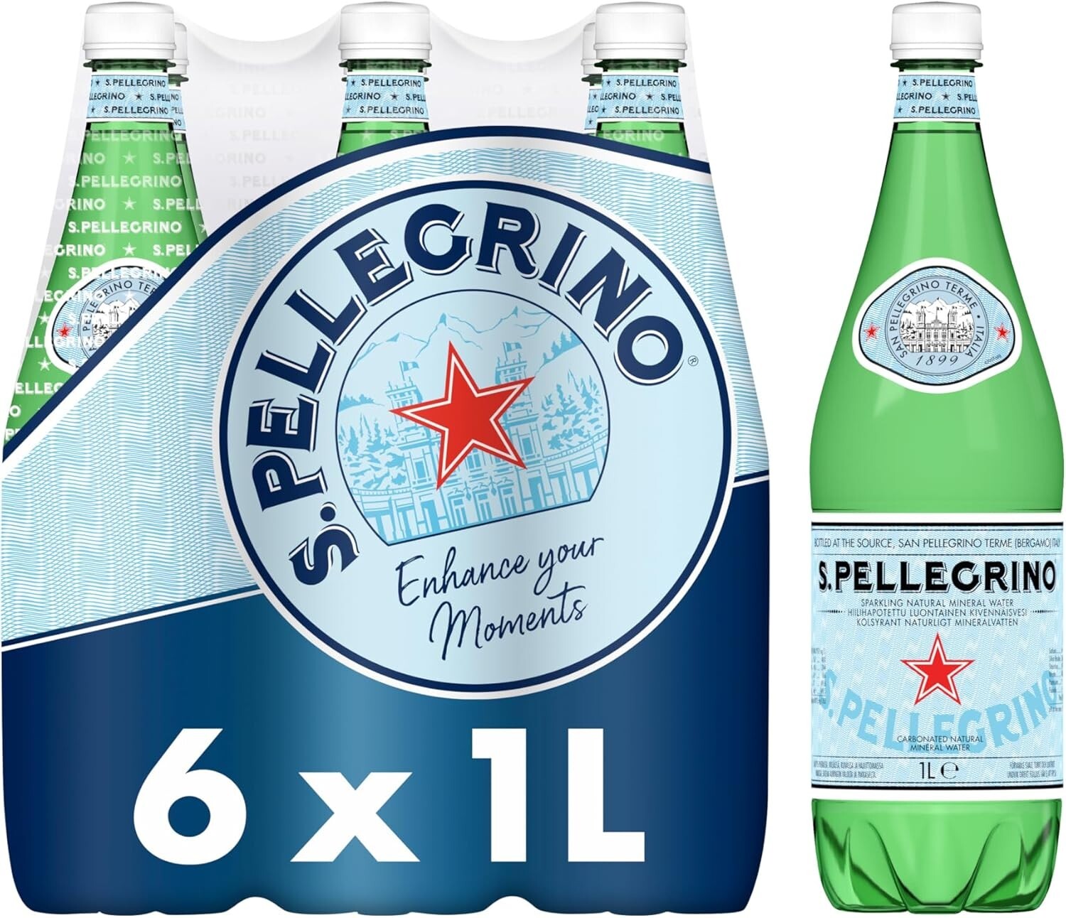 San Pellegrino Sparkling Natural Mineral Water 6x1L - Premium Italian Sparkling Water, Iconic Brand since 1899 (12315686)