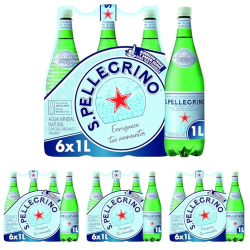 San Pellegrino Sparkling Natural Mineral Water 6x1L - Premium Italian Water, Iconic Brand since 1899 (12315686)