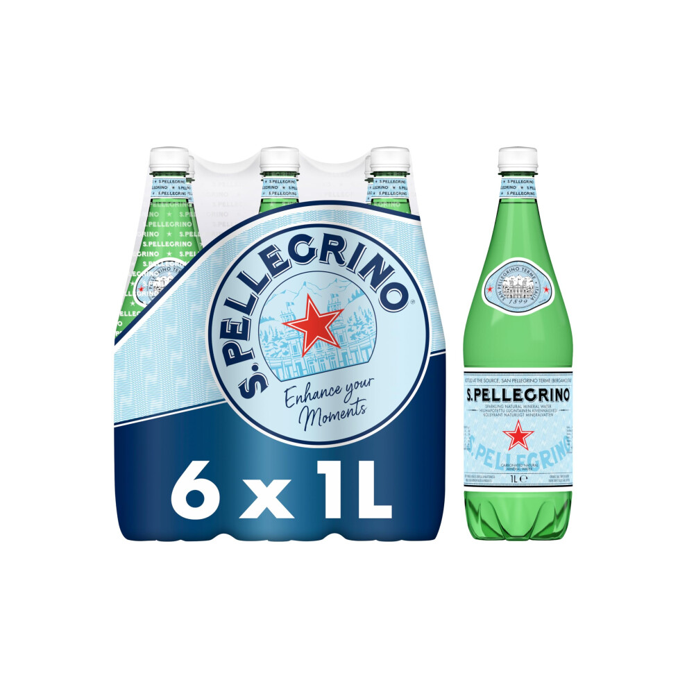 San Pellegrino Sparkling Natural Mineral Water 6x1L - Naturally carbonated with fine mid-sized bubbles, perfect for meals and moments