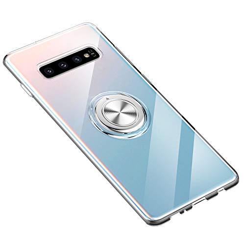 Dqtaoply for Samsung Galaxy S10 Plus Case, Clear Cover Ultra Thin Transparent TPU Silicone Bumper Soft Case with 360° Ring Stand Magnetic Car Mount Cover for Samsung Galaxy S10 Plus Clear