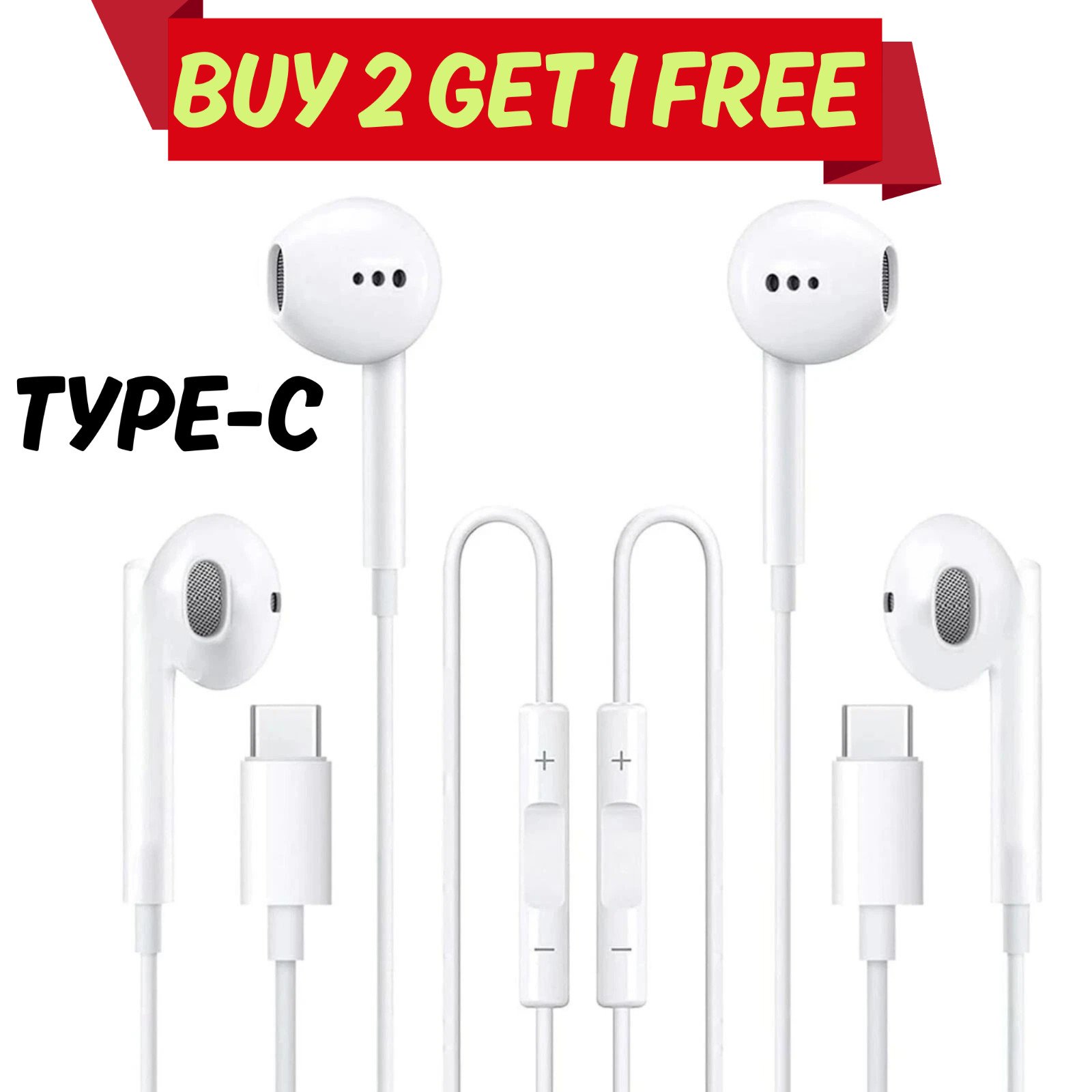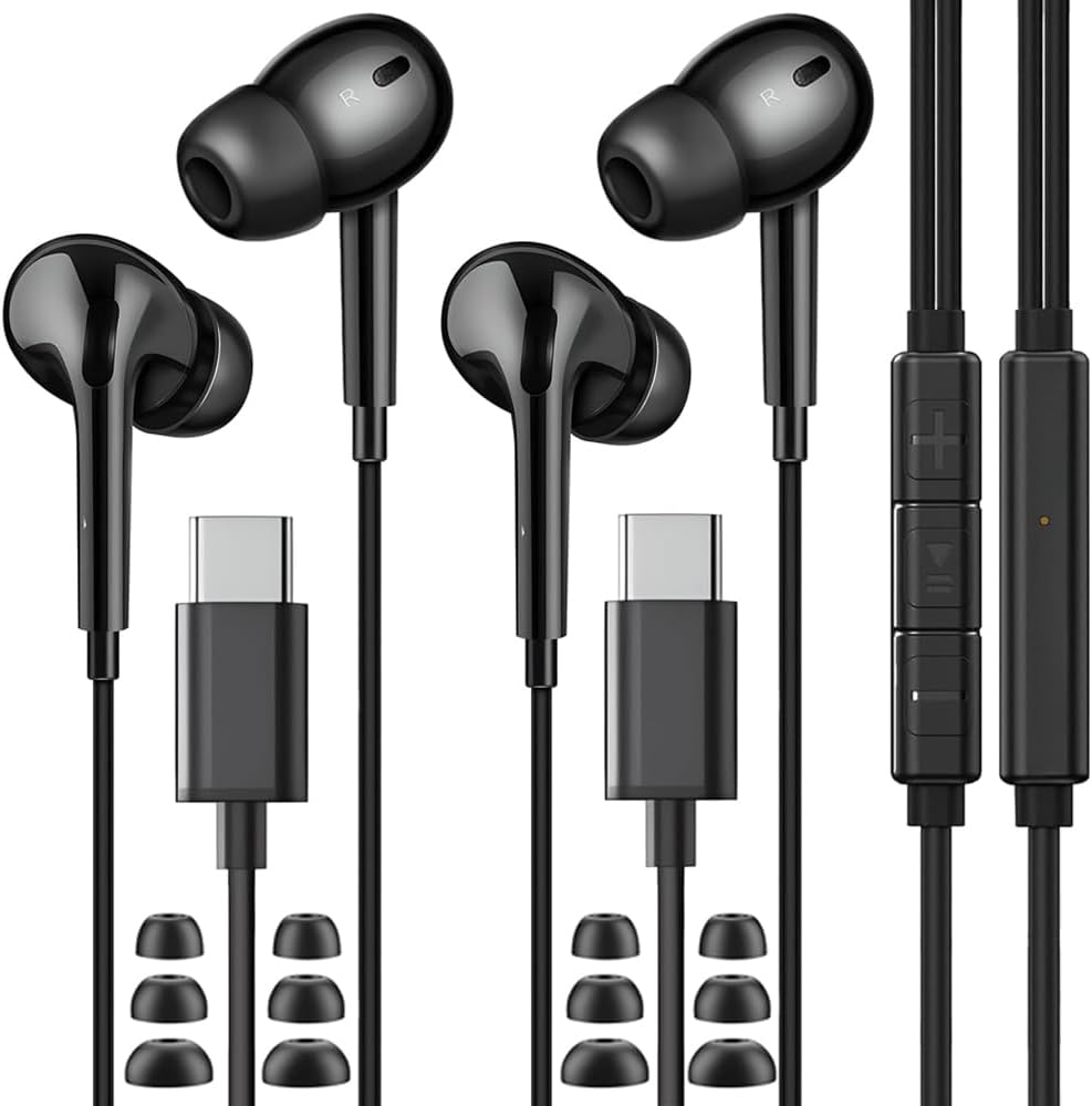 2X USB C Headphones, In-Ear Headset with Microphone and Volume Control ,Type Headphones for S22 S21 S20 FE A53